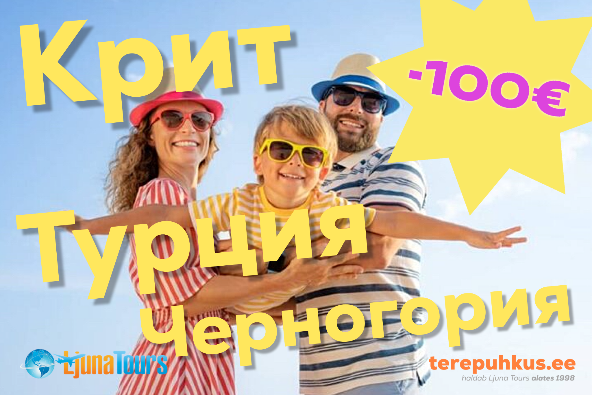 Условия кампании: Направления - Турция, Крит, Черногория Даты и продолжительность поездки: все даты и все продолжительности Скидка 70 € на все отели из летней коллекции 2026 Скидка 100 € на отели из летней коллекции 2026 Stars (отмеченные звездочкой в списке) Предложение не распространяется на одноместные номера Период бронирования: 03.09.2025 – 02.10.2025 (до 23:59) Цены могут изменяться в зависимости от наличия Предложение не распространяется на бронирование только авиабилетов, проживания или дополнительных услуг Скидка может быть объединена со специальными предложениями для медовых месяцев, пожилых людей и небольших групп