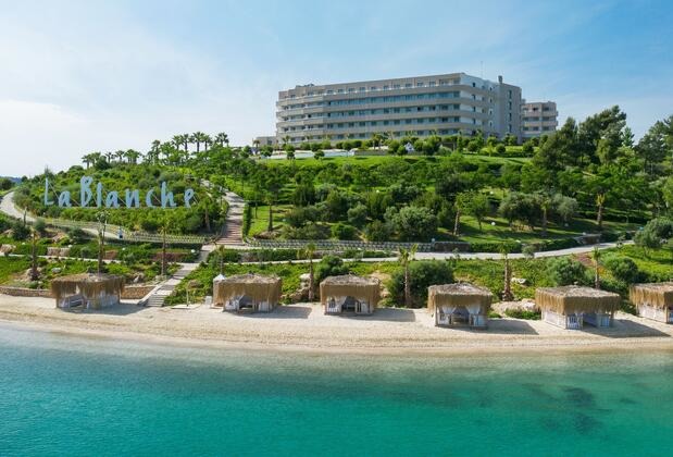 La Blanche Island Bodrum 5* Стильный, современный, великолепный отель по полуострове, огромная территория утопает в зелени. Великолепное море! До крепости Бодрума 20 км, можно взять экскурсию. Проводится много развлекательных мероприятий, предпочтительно для молодых пар и семей с детьми